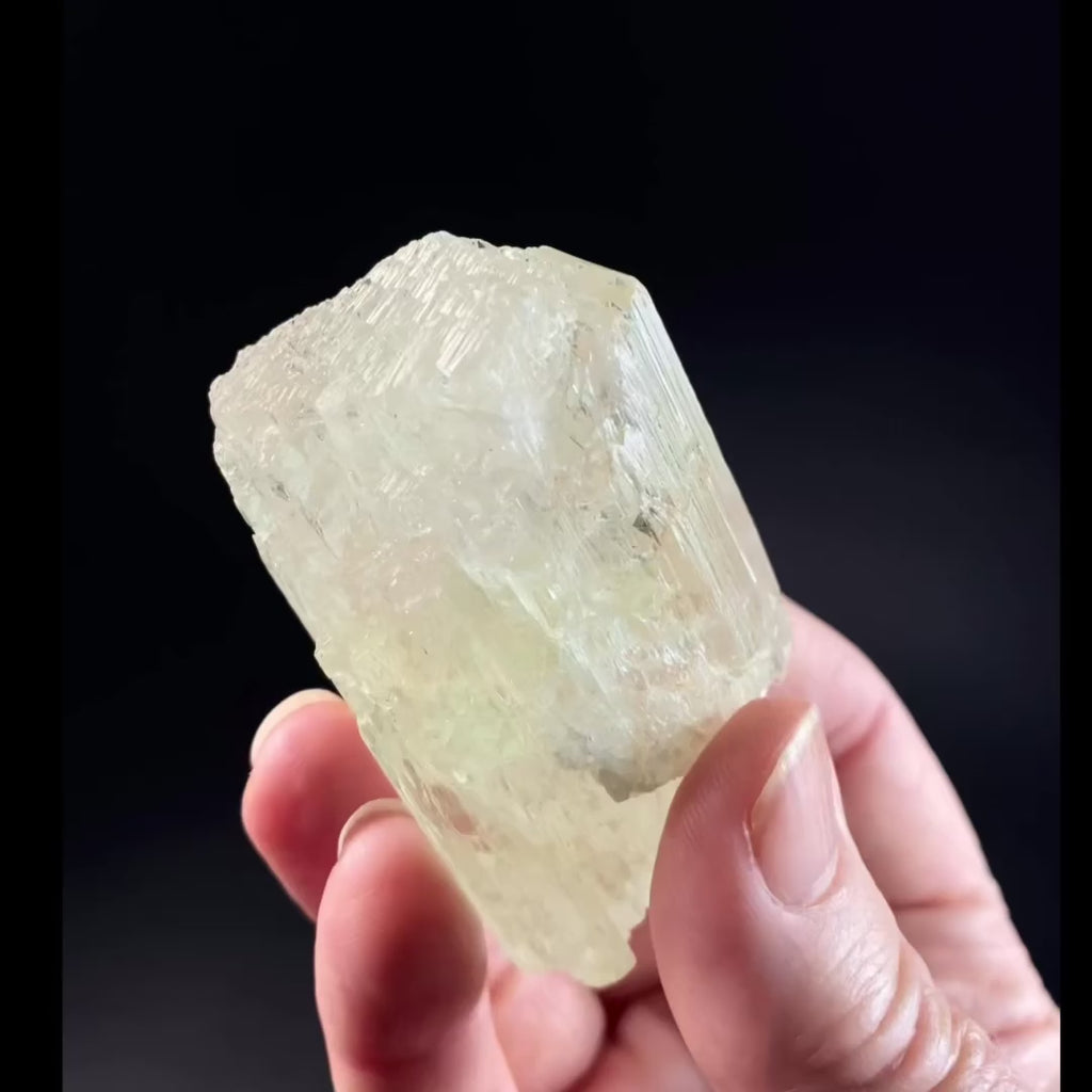 Beautiful, pale yellow color triphane spodumene crystal from Laghman Afghanistan. Triphane is the yellow variety of spodumene. The pink variety is called kunzite. (we have kunzite crystals also)